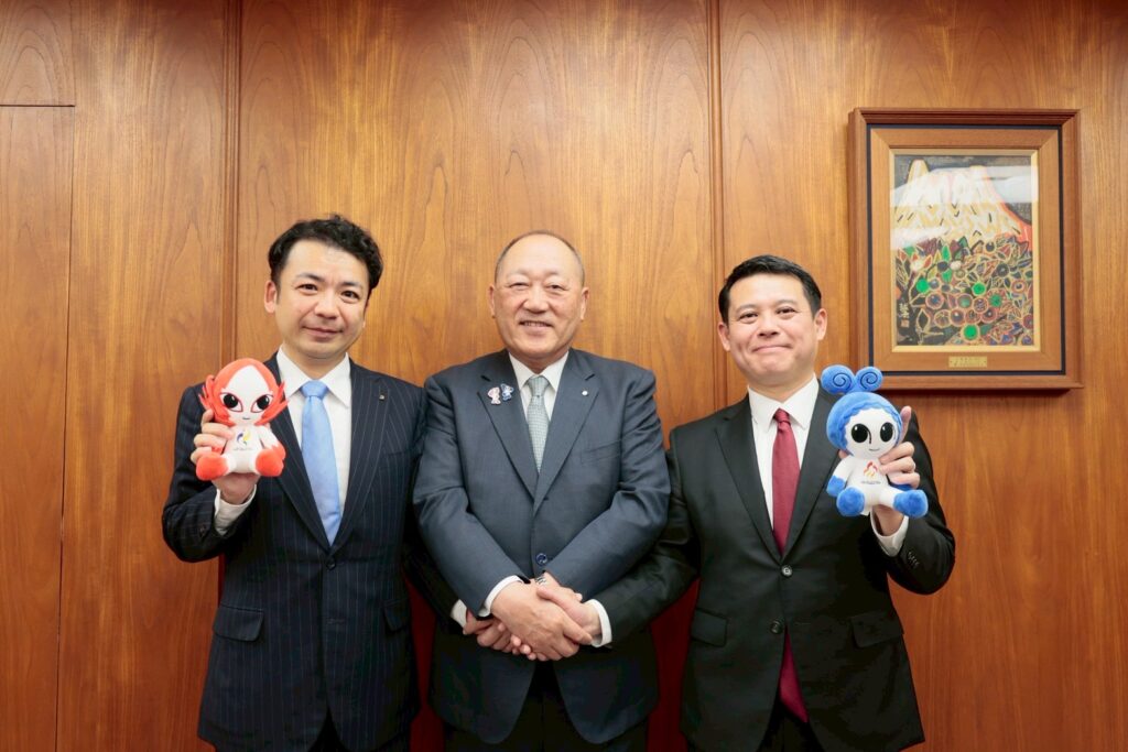 名古屋商工会議所の嶋尾会頭と、令和7年度梅田代表幹事、令和8年度水野代表幹事の顔合わせが名古屋商工会議所にて行われました。