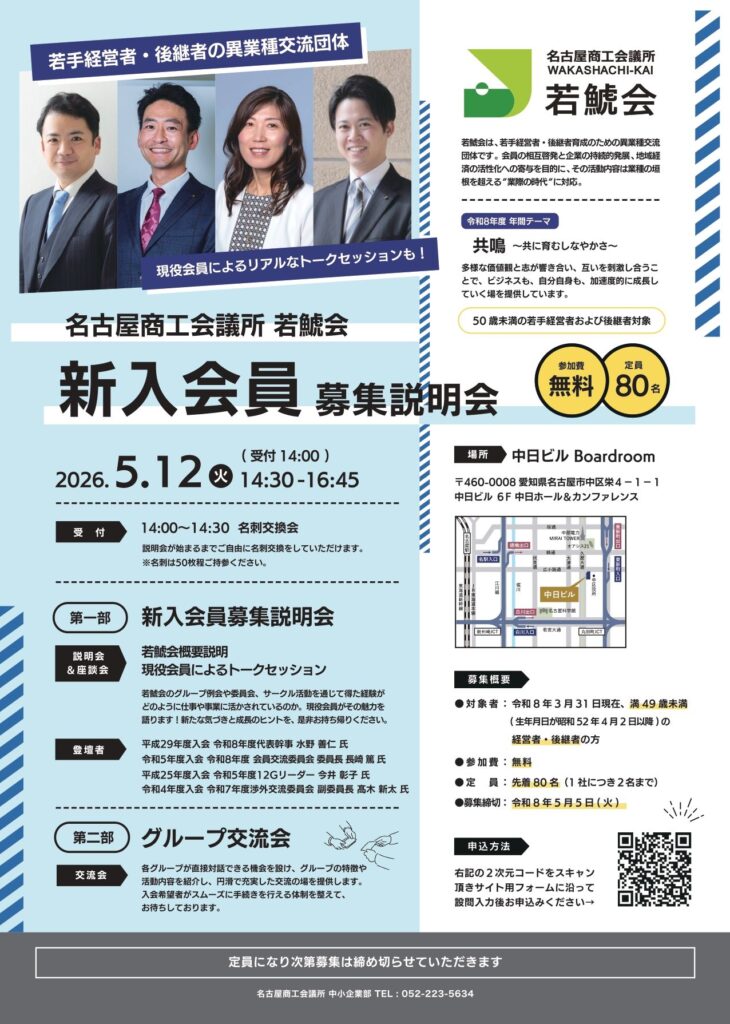 3. 令和8年度 第1回 若鯱会新入会員募集説明会開催のお知らせ